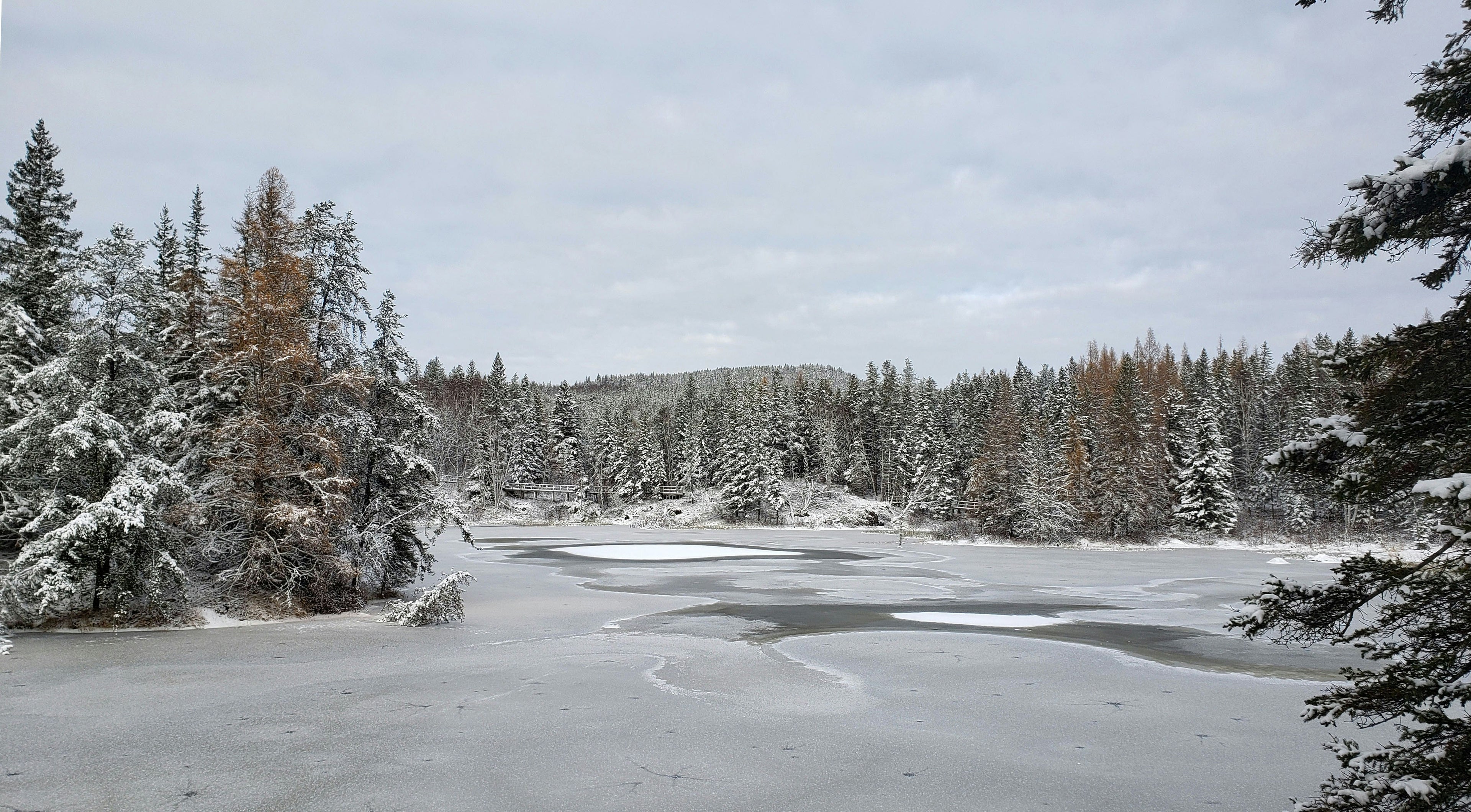 Vanilla scented natural soy wax candle with picture of a snowy forest